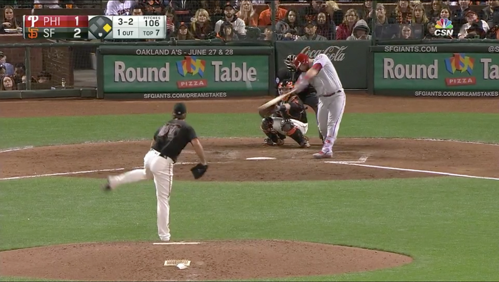Maikel Franco led off the fifth inning by breaking up the lefty's no-hit bid with a loud double down the left field line. Bumgarner would not allow the third baseman to score, but for the All-Star, it was the beginning of the end.